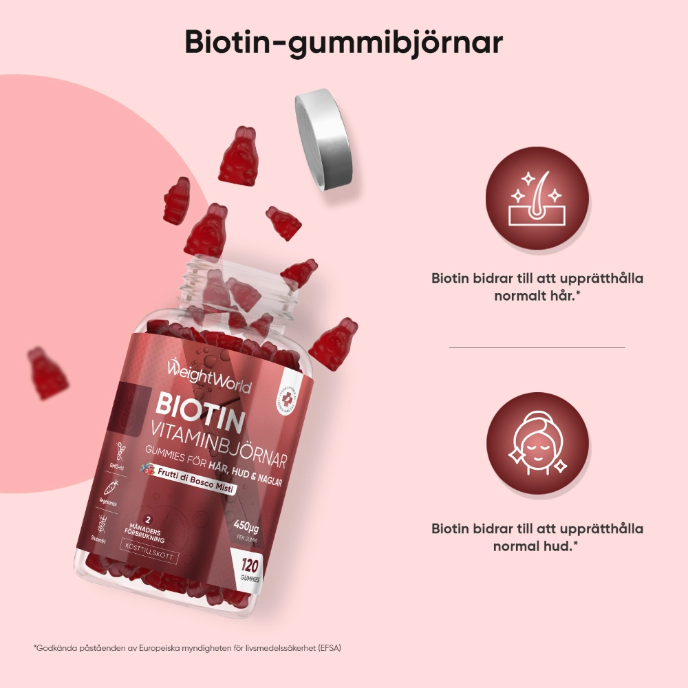 - Biotin bidrar till att bibehålla normalt hår och hud