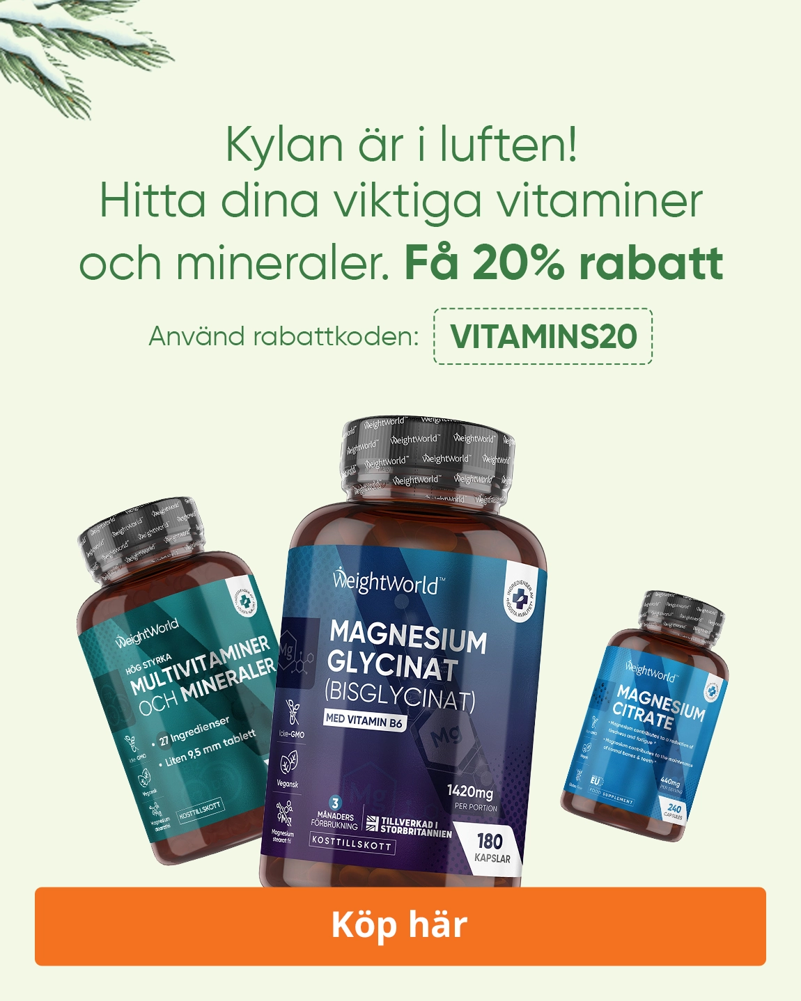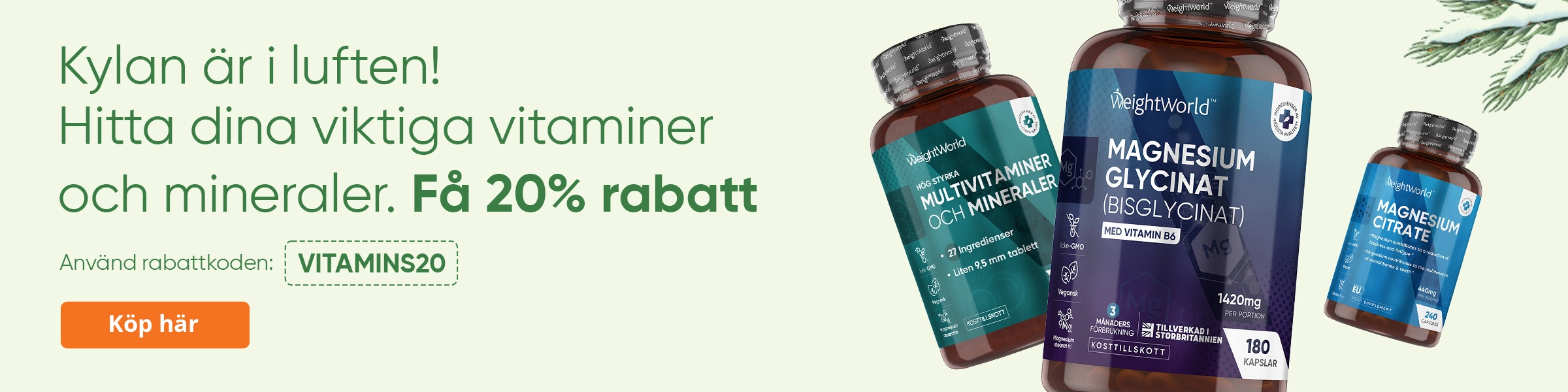 Det blir kyligare nu. Hitta dina vitaminer och mineraler med 20% rabatt.