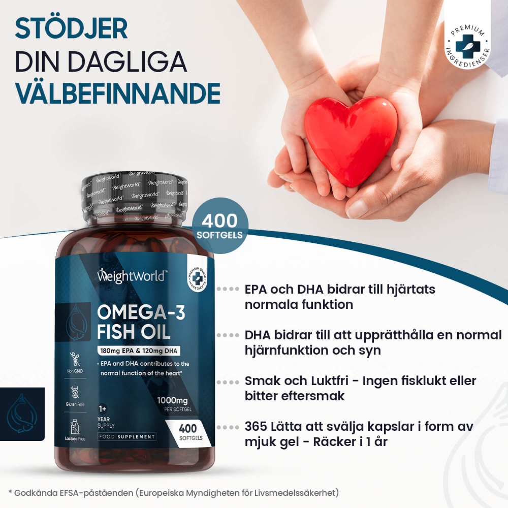 - 400 Fiskolja Omega 3 mjuka kapslar - för 1 års förbrukning
