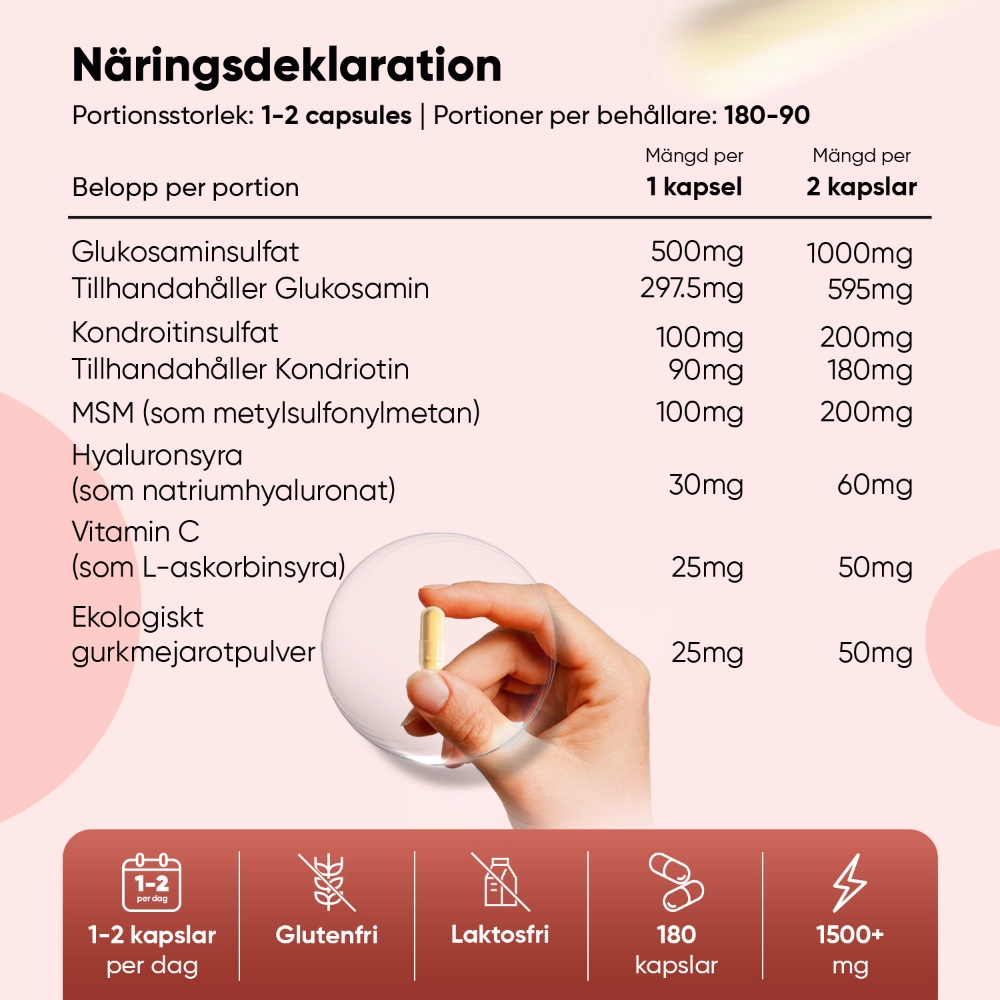 Glukosamin och kondroitin är naturligt förekommande ämnen i ledbrosket, där de ingår i kroppens egen struktur. Med åldern kan ledbrosket gradvis förändras, vilket kan hindra rörligheten. MSM är en svavelhaltig förening som finns i vissa livsmedel och används ofta som ingrediens i kosttillskott.