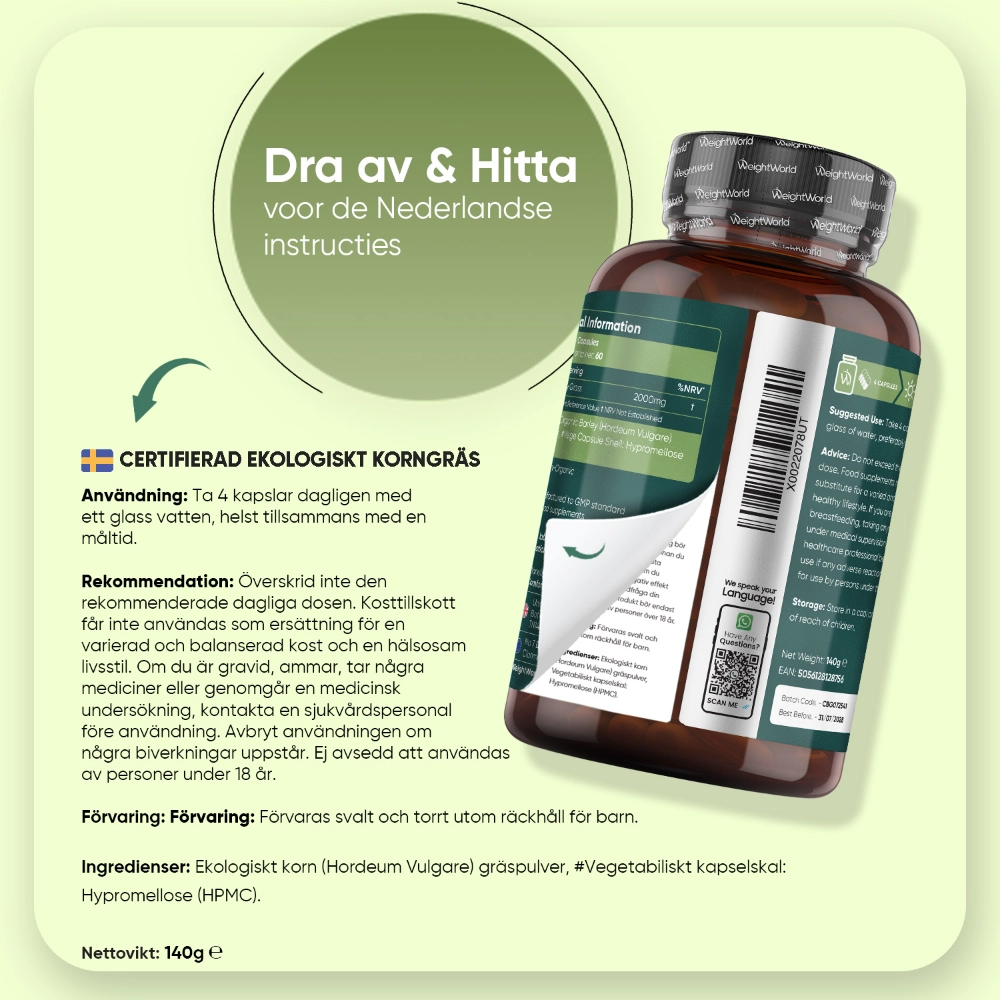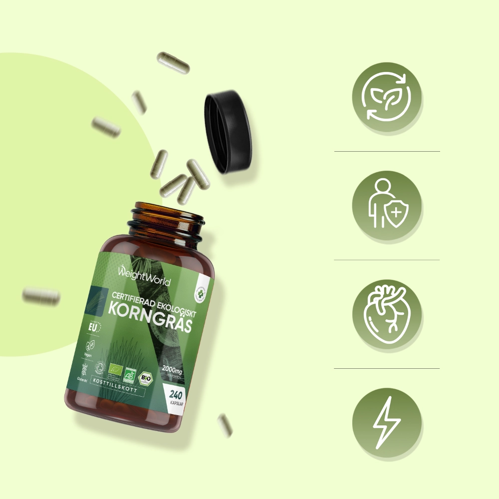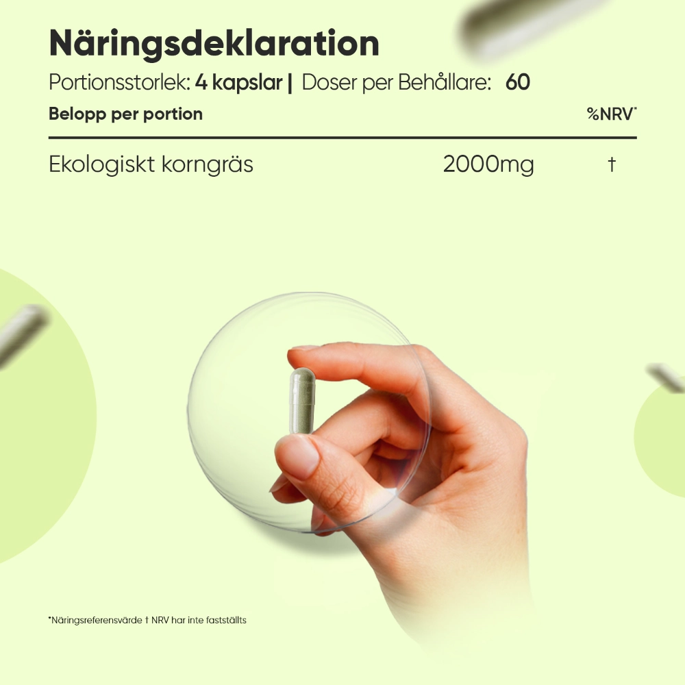 - Korngräskapslar med hög daglig dos - 2000 mg
