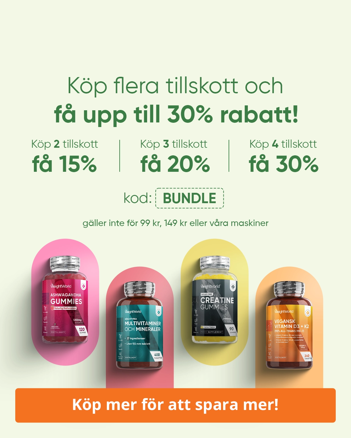Få upp till 30 % rabatt när du köper 2, 3 eller 4 kosttillskott idag!