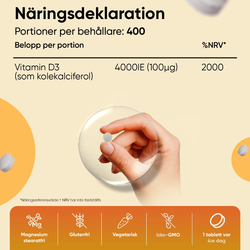 - Vitamin D3 tabletter med hög daglig dos - så mycket som 4000 IU (100 mcg)
